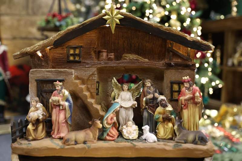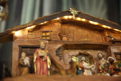 Veľmi pekne prevedený Betlehem. Figúrky sú pevne osadené, LED svetlá osvetľujú celý Betlehem. Zdroj: použitie na batérie ale aj USB port.