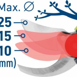 Sú poháňané najmodernejším bezuhlíkovým motorom. Tento nový typ motora má vyššiu životnosť, je výkonnejší a má menšiu spotrebu ako klasické motory s uhlíkovými kefami. Funkcia elektronického nastavenia vzdialenosti strihacích čepieľok umožňuje nastavenie rozovretia na 10mm, 15mm alebo 25mm, čo urýchľuje prácu, znižuje spotrebu a zaisťuje dlhšiu výdrž batérie. Strihacie čepele sa môžu brúsiť a sú ľahko vymeniteľné. Pri nečinnosti sa nožnice uspia, aby šetrili batériu.Prednosti produktu