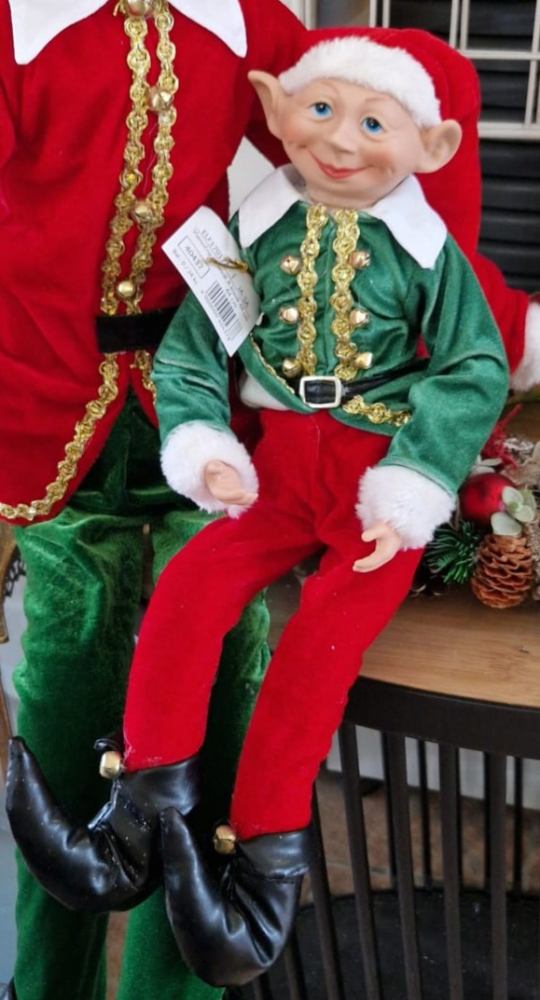 Je ohybný, s drôtom vo vnútri, preto sa dá prispôsobiť polohe akú práve potrebujete. Škriatok je mimoriadne obľúbená vianočná dekorácia, je vhodný aj ako darčekRozmery: výška sediaceho škriatka 40cm, výška škriatka v stoji 44cm, šírka 10cm,hĺbka 8cm