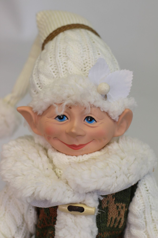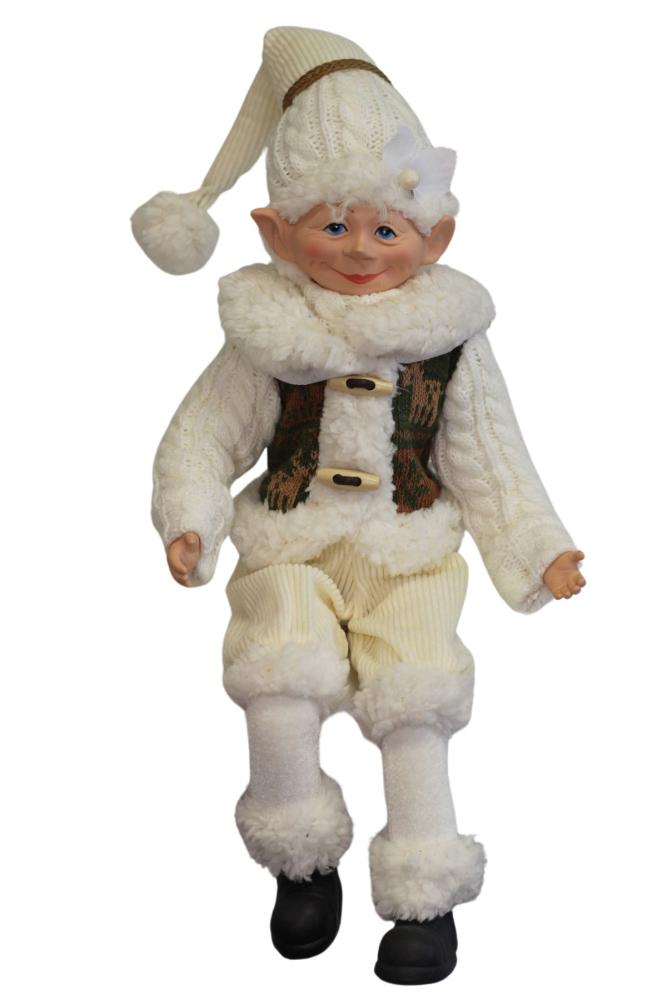 Je ohybný, s drôtom vo vnútri, preto sa dá prispôsobiť polohe akú práve potrebujete. Škriatok je mimoriadne obľúbená vianočná dekorácia, je vhodný aj ako darčekRozmery: výška sediaceho škriatka 40cm, výška škriatka v stoji 44cm, šírka 10cm,hĺbka 8cm