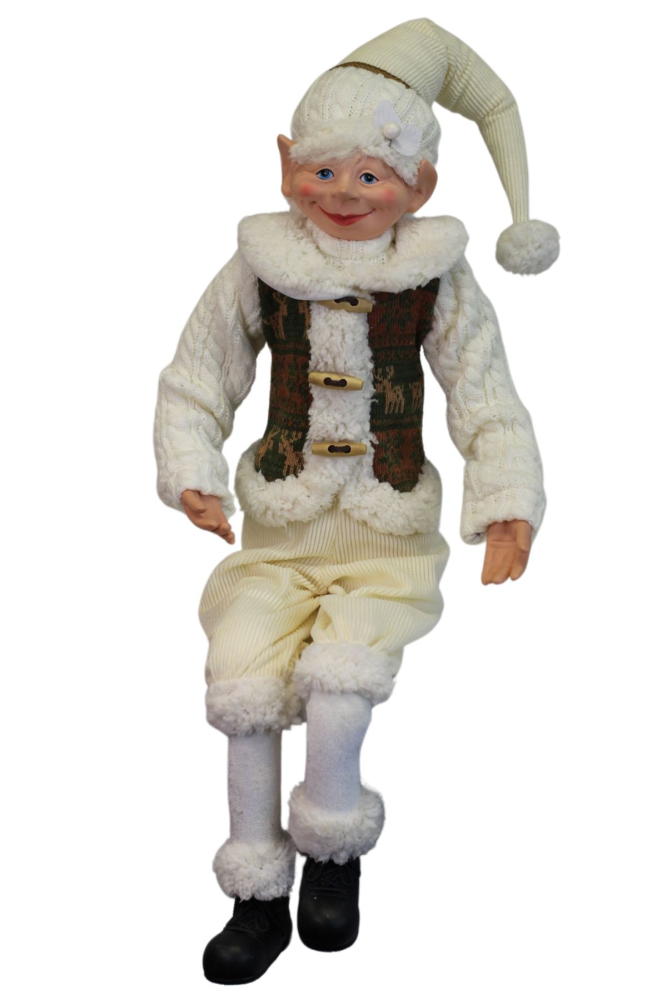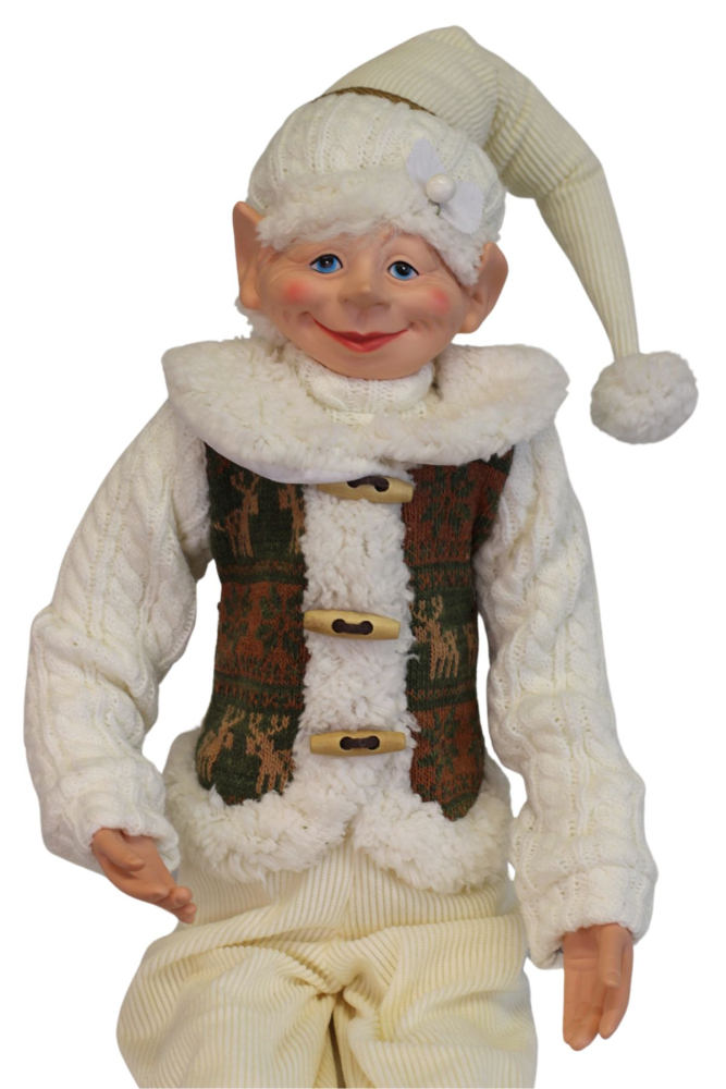 Je ohybný, s drôtom vo vnútri, preto sa dá prispôsobiť polohe akú práve potrebujete. Škriatok je mimoriadne obľúbená vianočná dekorácia, je vhodný aj ako darčekRozmery: výška sediaceho škriatka 65cm, výška škriatka v stoji 77cm, šírka 13cm,hĺbka 11cm
